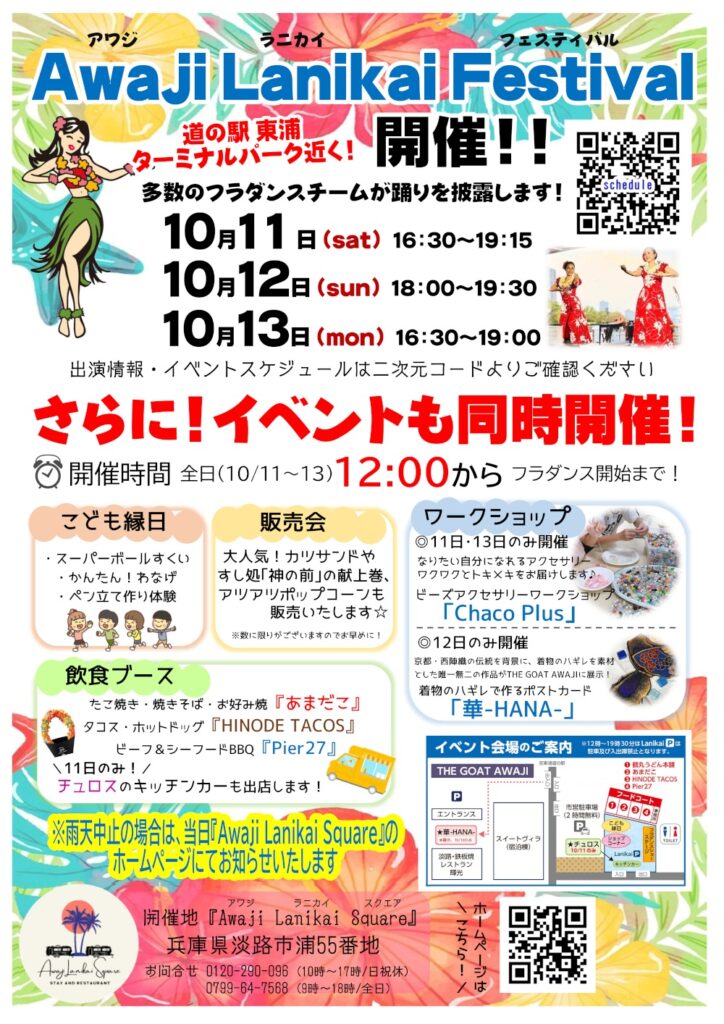 グループ施設のAwaji Lanikai Squareにて10月11日(土)から13日(月)の3日間、「Awaji Lanikai Festival」を開催されます。